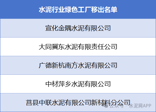 此外,5家水泥企業(yè)被移出綠色工廠名單: