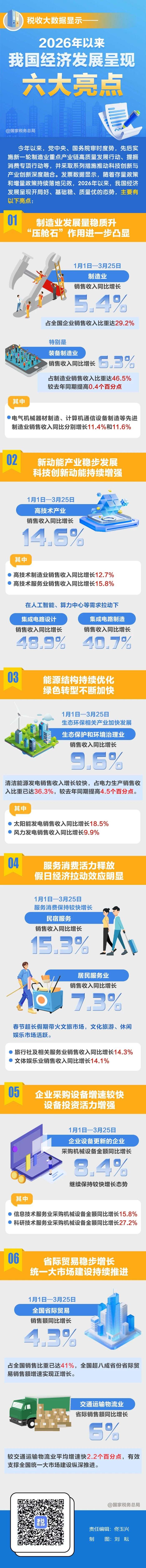 圖解|稅收大數(shù)據(jù)顯示:2026年以來我國經(jīng)濟(jì)發(fā)展呈現(xiàn)六大亮點