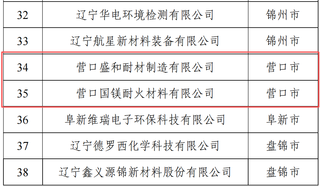 營口市盛和耐材、國鎂耐火入選《2026年第一批遼寧省瞪羚企業(yè)名單》